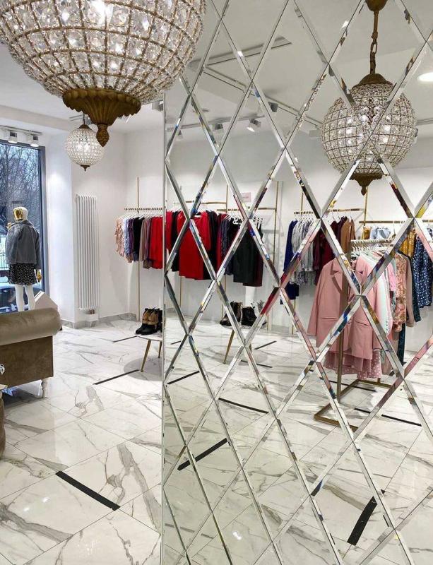 Использована серебряная зеркальная плитка «вытянутый ромб».
